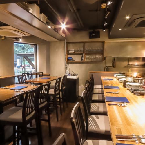 【開放感のあるお洒落な空間で、ゆったりとお過ごしいただけます】店内には、カウンター席とテーブル席を完備しております。ゆったりと落ち着いてお食事いただけるお洒落な空間で、四季折々の”旬”の味覚と当店自慢の豊富なワインを心ゆくまでご堪能ください◎