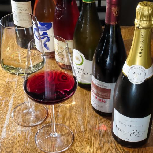 【~常時15種類以上の豊富なワインはグラスで気軽にお楽しみいただけます~】